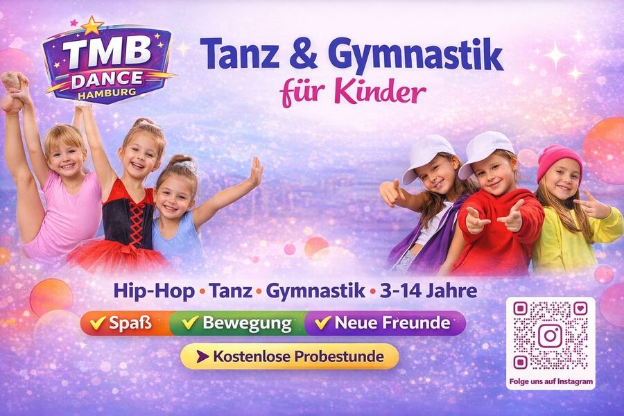 TMB Dance Hamburg e.V. – Tanzschule für Kinder: in unserem Kurs bieten wir donnerstags Tanz- und Gymnastikunterricht für Kinder von 3 bis 6 Jahren (16:15-17:15 Uhr) und für Kinder von 6 bis 8 Jahren (17:15-18:15 Uhr) an.